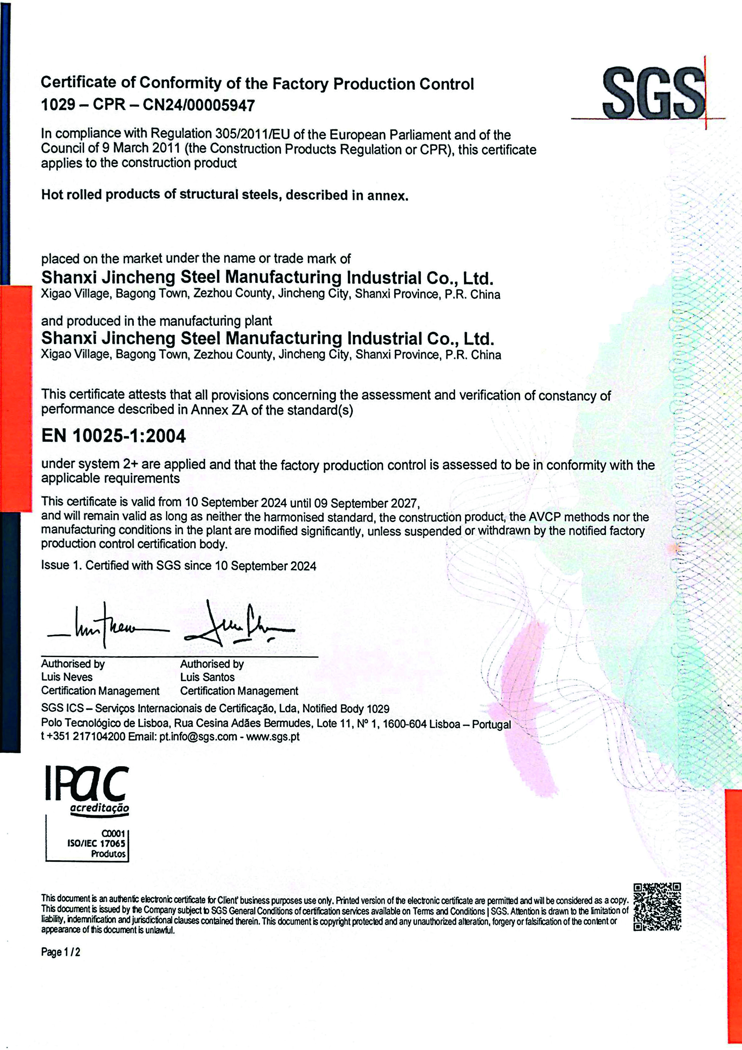晉鋼歐盟CE證書(第一頁)