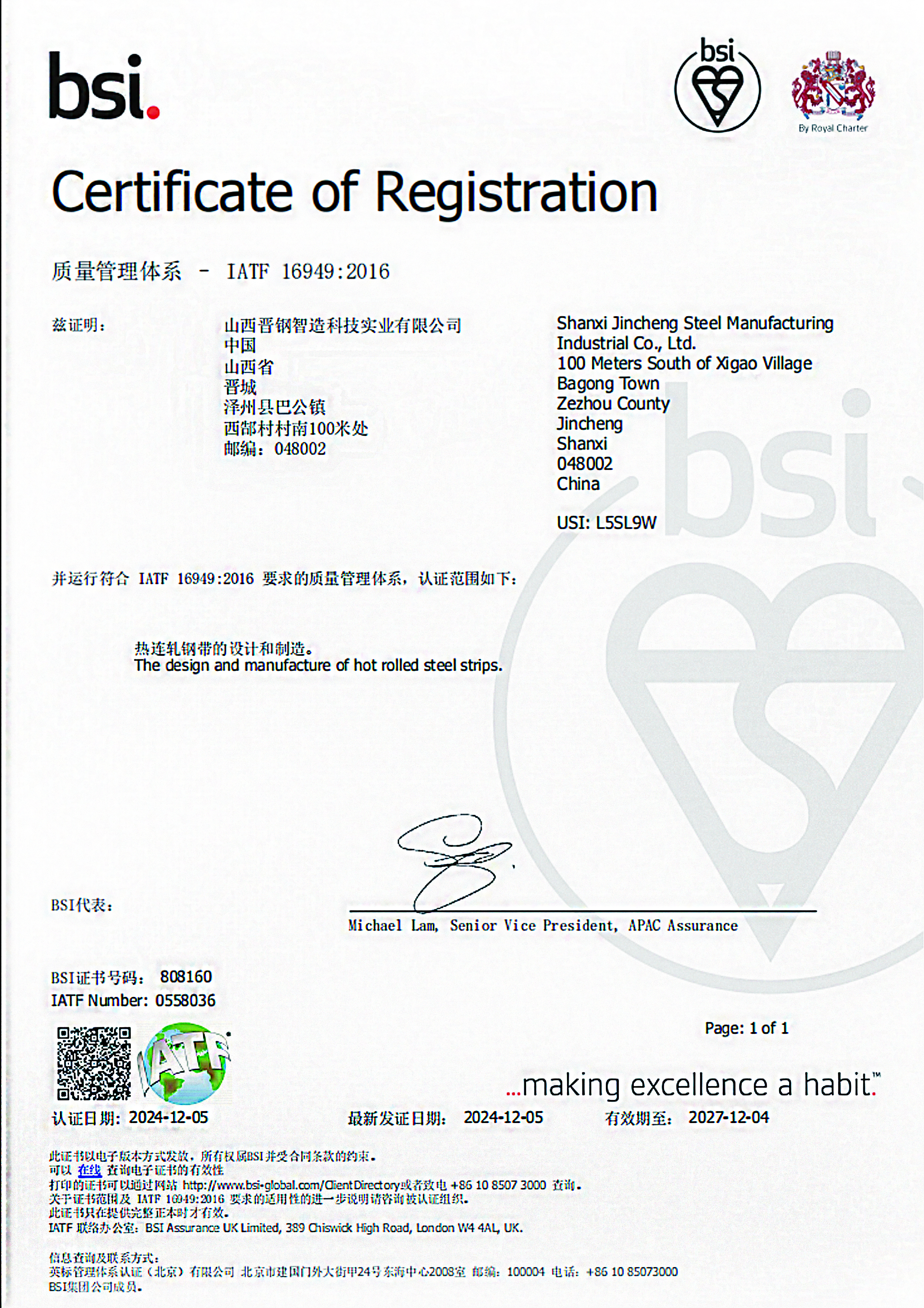 晉鋼智造汽車鋼證書