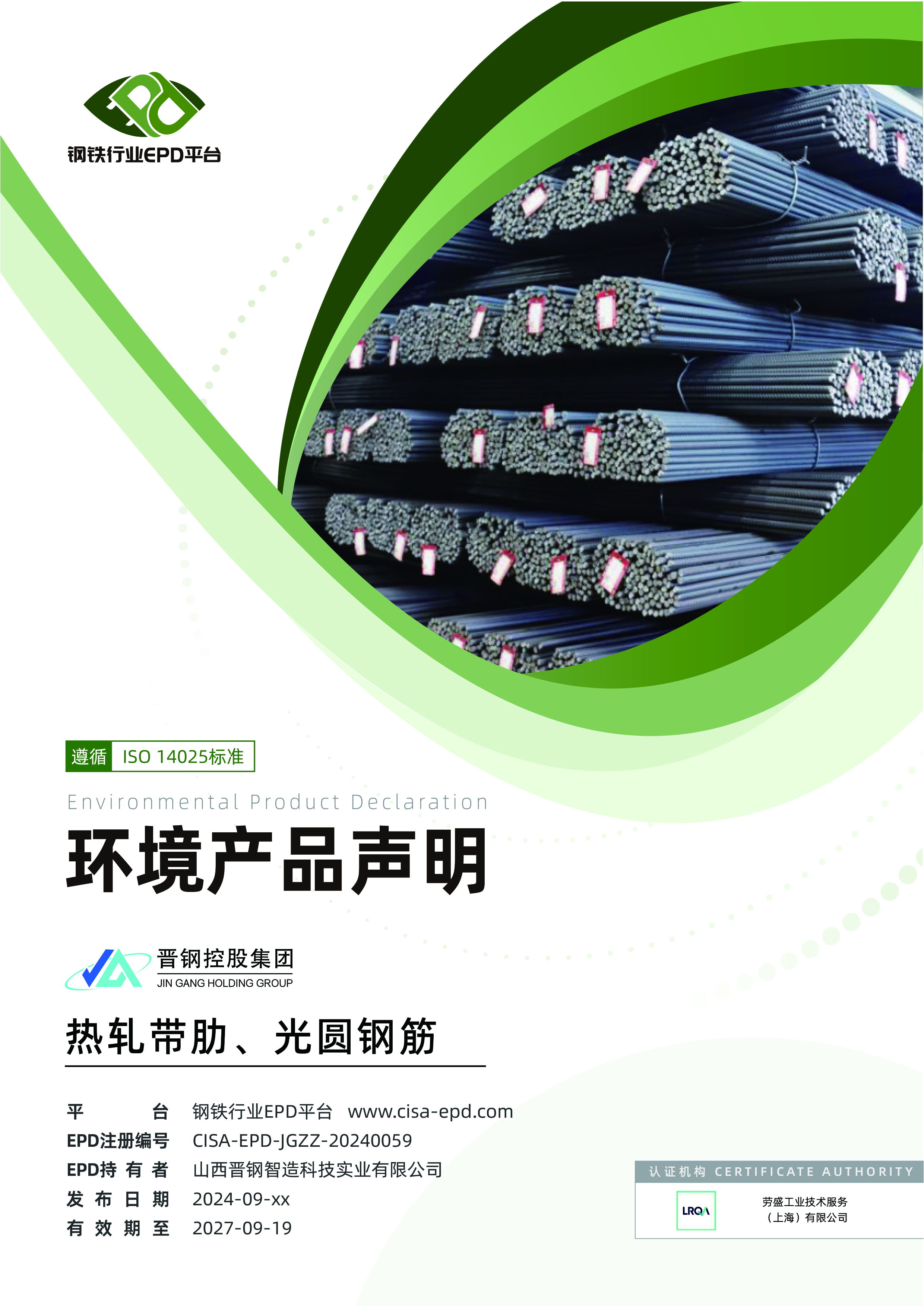 EPD熱軋帶肋、光圓鋼筋環(huán)境產(chǎn)品聲明