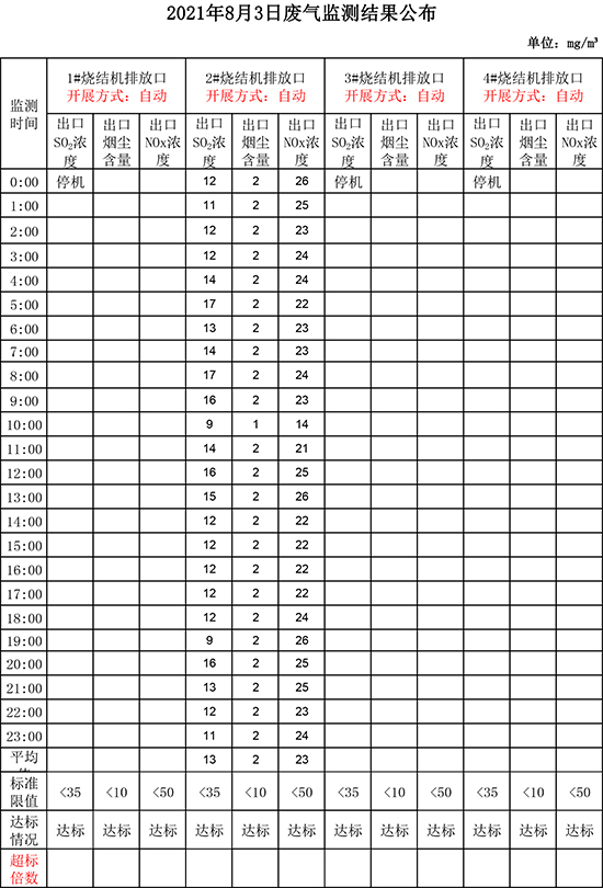 8月3日晉鋼集團(tuán)廢氣監(jiān)測結(jié)果公布