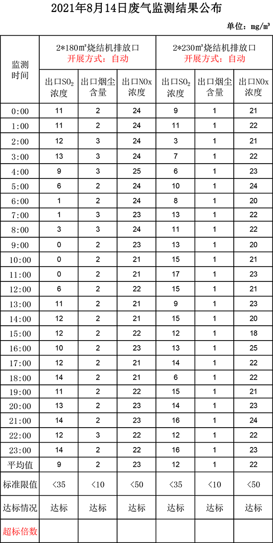 8月14日晉鋼集團廢氣監(jiān)測結(jié)果公布