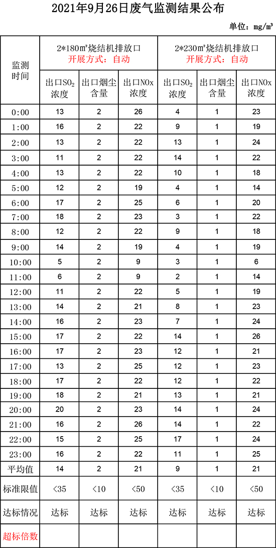9月26日晉鋼集團(tuán)廢氣監(jiān)測(cè)結(jié)果公布