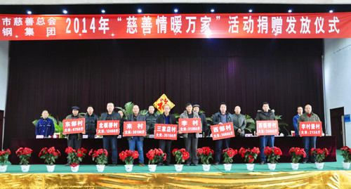 2014年1月11日上午,由晉城市慈善總會(huì)和晉鋼集團(tuán)共同舉辦的2014年“慈善情暖萬家”捐贈(zèng)發(fā)放儀式在晉鋼會(huì)堂隆重舉行。雖然正值三九寒冬,但晉鋼會(huì)堂內(nèi)充溢著愛意暖流。
