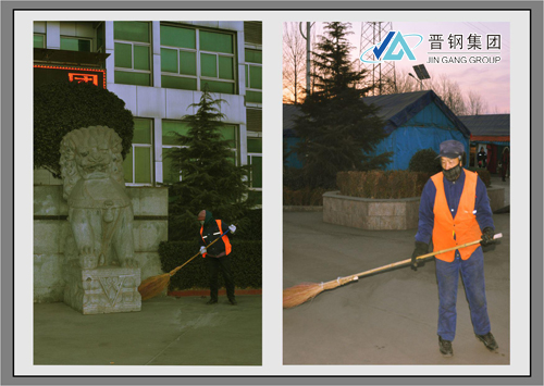 環(huán)衛(wèi)工——這個(gè)普普通通的群體,擔(dān)負(fù)著集團(tuán)公司環(huán)境清潔和美化工作,被人們親切地成為公司形象的“美容師”。不論春夏秋冬,不畏嚴(yán)寒酷暑,他們風(fēng)雨無(wú)阻,辛勤工作,為了公司的干凈整潔,默默無(wú)聞的奉獻(xiàn)著。是他(她)們,用勤勞的雙手和特有的“畫(huà)筆”描繪了晉鋼美麗的風(fēng)景。